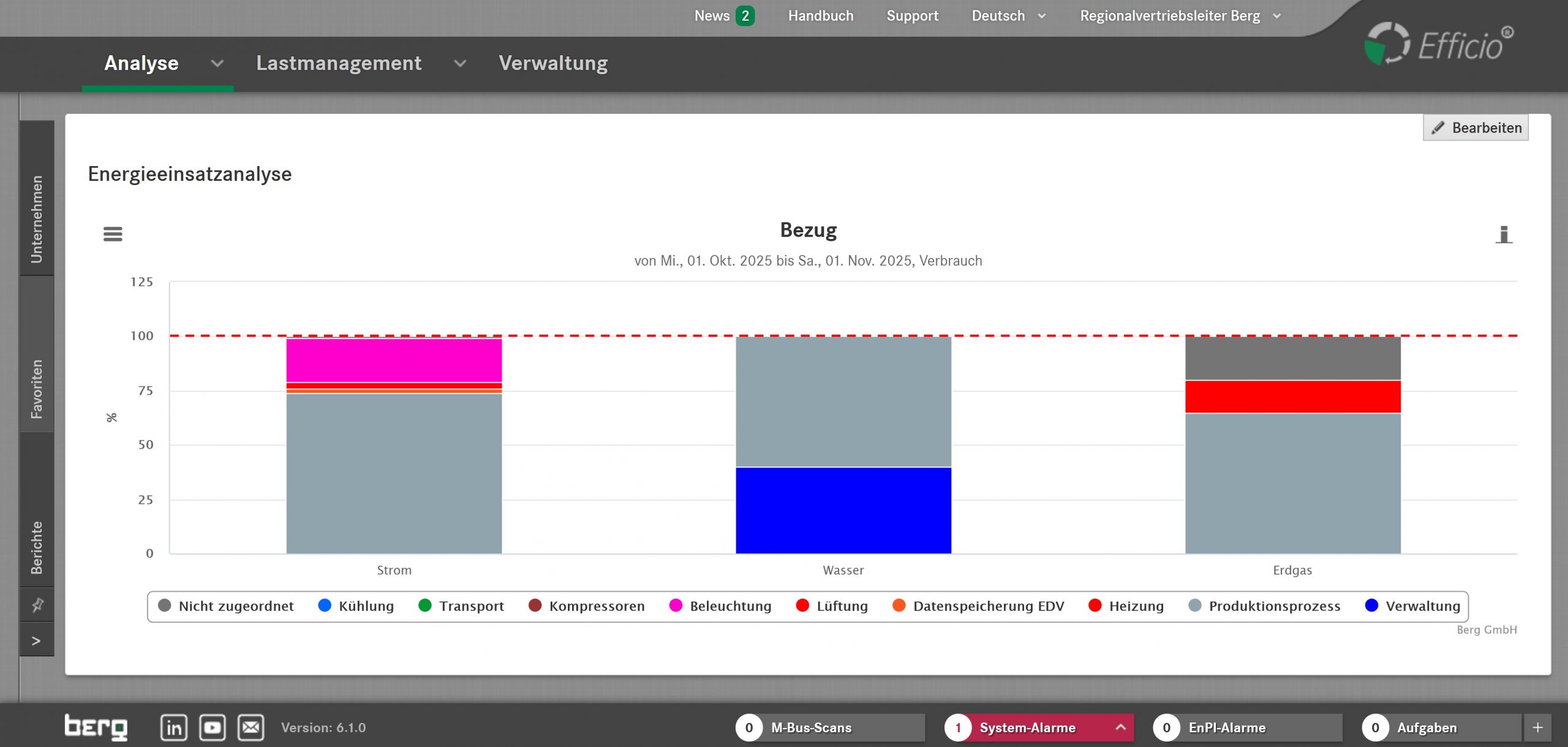 Mit einem strukturierten Energiemonitoring wie bsw. unserem Energiemanagementsystem Efficio® schaffen Unternehmen Transparenz, erschließen neue Effizienzpotenziale und erfüllen regulatorische Anforderungen.