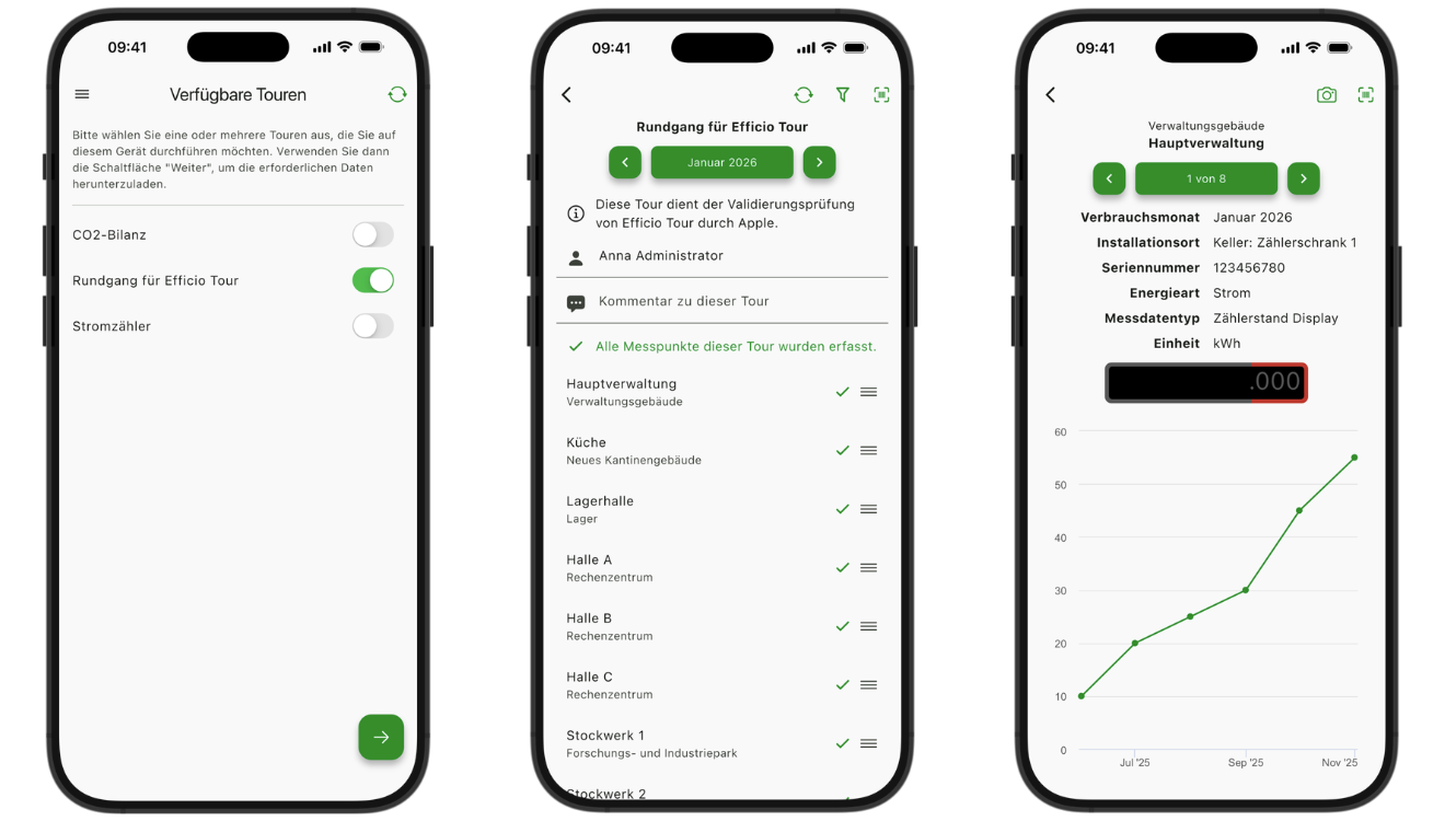 - Nach einer Synchronisation auch ohne Verbindung zum Efficio-Server nutzbar